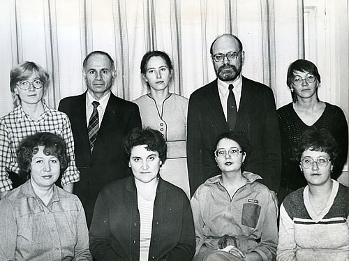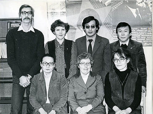 Верхний ряд: Г.Славин, Г.Крушенко, А.Петров, Г.Зайков, В.Буторов, Б.Балашов, В.Москвичев, Е.Данилина, А.Буров, Комиаров. Нижний ряд: Л.Соколова, Л.Сабецких, М.Быкова, Е.Литвин, И.Иванова, Т.Трошина, З.Василенко