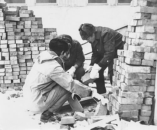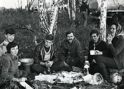 Работа на полях совхоза «Удачный». Е.Ильин, В.Шайдуров, Е.Бабурин