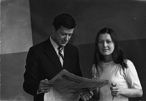 Секретарь партийной организации А.Рудаков с молодым стажером Т.Тушко