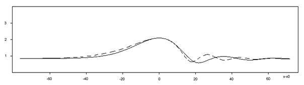 Уединенные волны на пленке, движимой потоком газа Автор результата: А. М. Франк, г.н.с., д.ф.-м.н., профессор. Нелинейные волны на границе пленки, движимой потоком газа, изучены гораздо слабее их гравитационных аналогов. Немногочисленные теоретические и численные исследования имеют дело, как правило, с жидкостями с близкими плотностями и/или вязкостями, поскольку большое отличие этих величин привносит дополнительные сложности. В существующих экспериментальных работах, в отличие от экспериментов по гравитационным волнам, изучались только естественные волны, которые быстро становятся трехмерными и нерегулярными. Приводимые ниже результаты получены численно впервые. Разработан метод частиц, на основе которого проведены численные эксперименты по изучению формирования и эволюции нелинейных волн на границе раздела. Показано существование уединенных волн в такой системе и проведено их сравнение с гравитационно-капиллярными волнами (рис. 7). Оказалось, что в канале, имеющем высоту, намного большую толщины пленки, при одинаковом числе Рейнольдса пленки эти волны имеют значительно большую амплитуду, чем гравитационно-капиллярные, а при одинаковой амплитуде — значительно меньшую фазовую скорость. При определенном масштабировании получена универсальная зависимость фазовой скорости волн на границе сдвигового течения от амплитуды. ![]() Рис. 7. Сравнение формы уединенной волны на границе раздела в сдвиговом двухфазном потоке (сплошная кривая) с гравитационно-капиллярным солитоном (пунктир) той же амплитуды Амплитуды волн существенно зависят от относительной плотности и вязкости газа при постоянном расходе пленочного течения несмотря на то, что касательное напряжение на границе раздела для невозмущенного течения пленки не зависит от этих параметров. Высота канала существенно влияет на параметры волн, в частности, в узком канале амплитуда волн уменьшается (при фиксированном расходе в пленке), а их фазовая скорость увеличивается (при фиксированной амплитуде волн). Существует диапазон изменения расхода газа (и, соответственно, расхода жидкости), когда амплитуда стационарных волн практически не меняется, но при этом изменяется их форма и фазовая скорость (рис. 8). Таким образом, в некоторых случаях фазовая скорость волн не является однозначной функцией их амплитуды (рис. 9). ![]() Рис. 8. Волны одинаковой амплитуды, имеющие разную форму и фазовую скорость ![]() Рис. 9. Фазовая скорость волн в зависимости от амплитуды для нескольких пар газ/жидкость