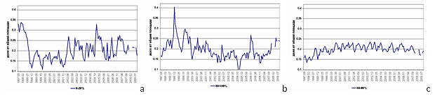 Полученные показатели можно использовать, как интегральный критерий стабильности-нестабильности системы «океан-атмосфера». Увеличение доли площадей крайних квантилей и уменьшение доли средней квантили свидетельствует о дестабилизации системы. После событий «Эль-ниньо — Ла-нинья» в 1997–1998 гг. наступил период постепенной стабилизации системы, который закончился осенью 2007 г.